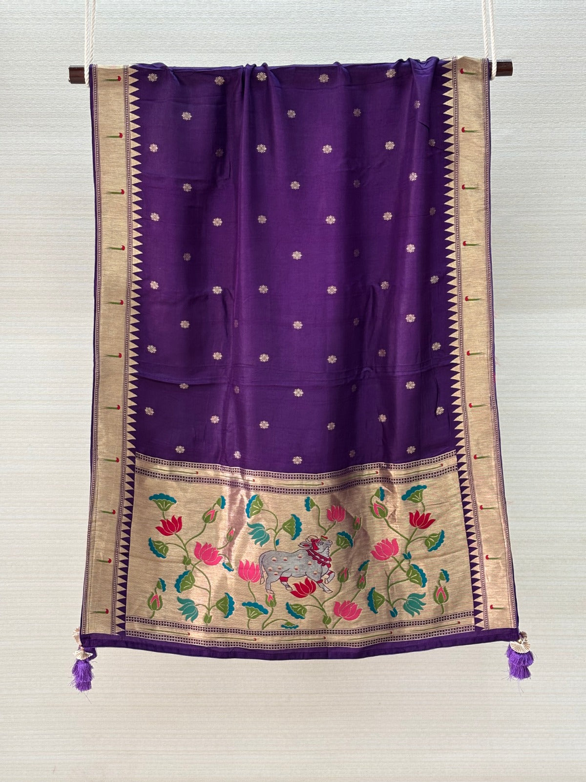 Pure Semi Silk Purple Paithani Dupatta with Muniya Border